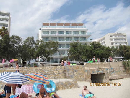 Blick vom Strand zum HotelVom Strand aus liegt hinter der Promenade das Hotel