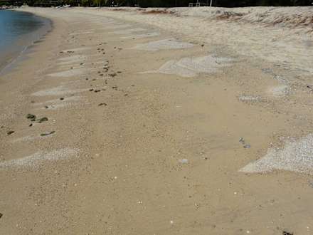 wörtlich lt. Airtours-Katalog: "weißer Sandstrand". Foto direkt vor den Lagunenvillen aufgenommen, am allgemein zugänglichen Strandabschnitt.