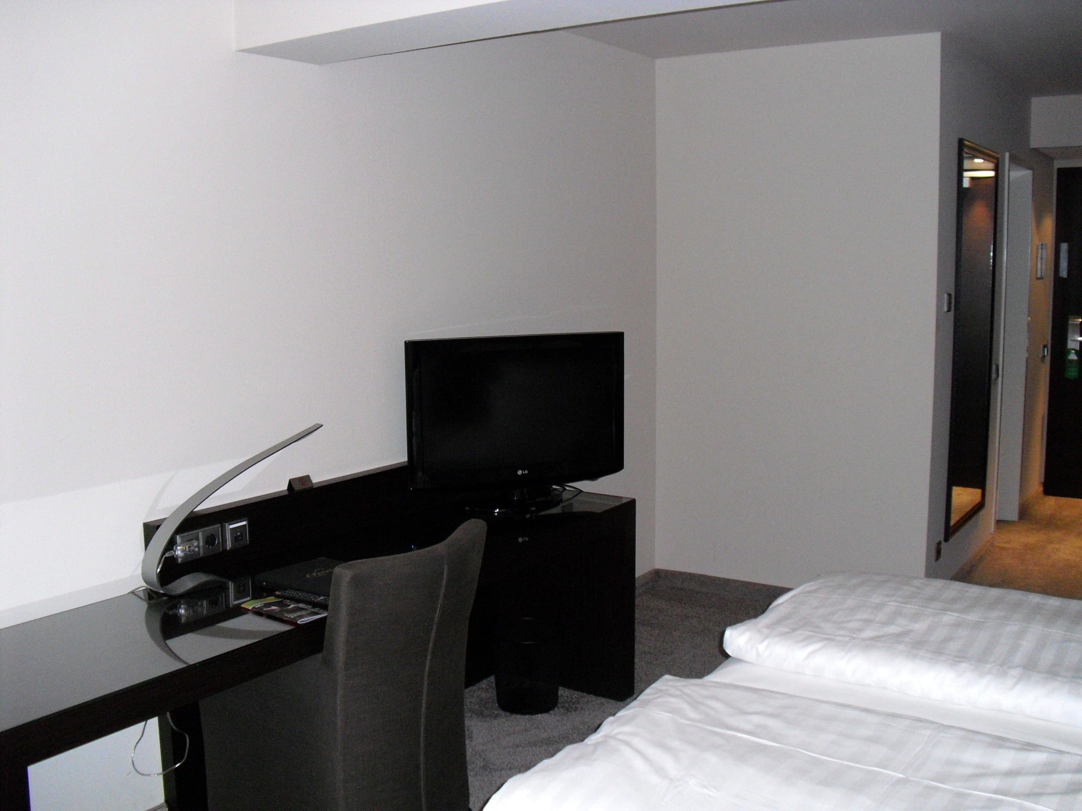 Schreibtisch und großer Fernseher
