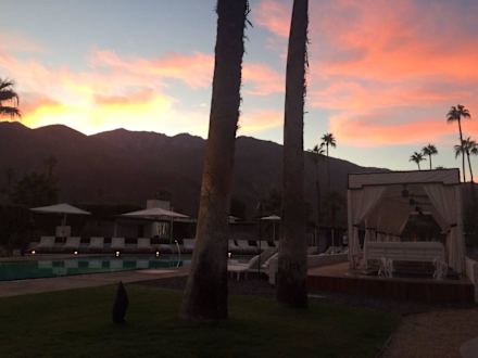 Poolanlage bei Sonnenuntergang