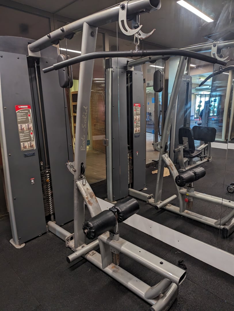 Gym, alt, rostig, teilweise unbrauchbare Geräte, hier fehlt der Sitz.