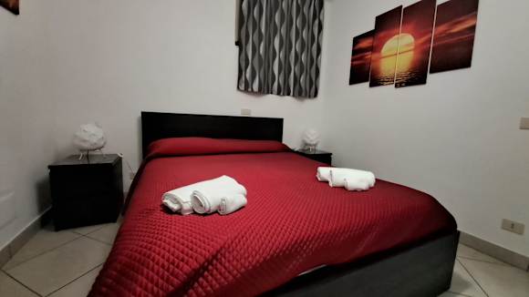 Schlafzimmer mit breitem Bett für 2