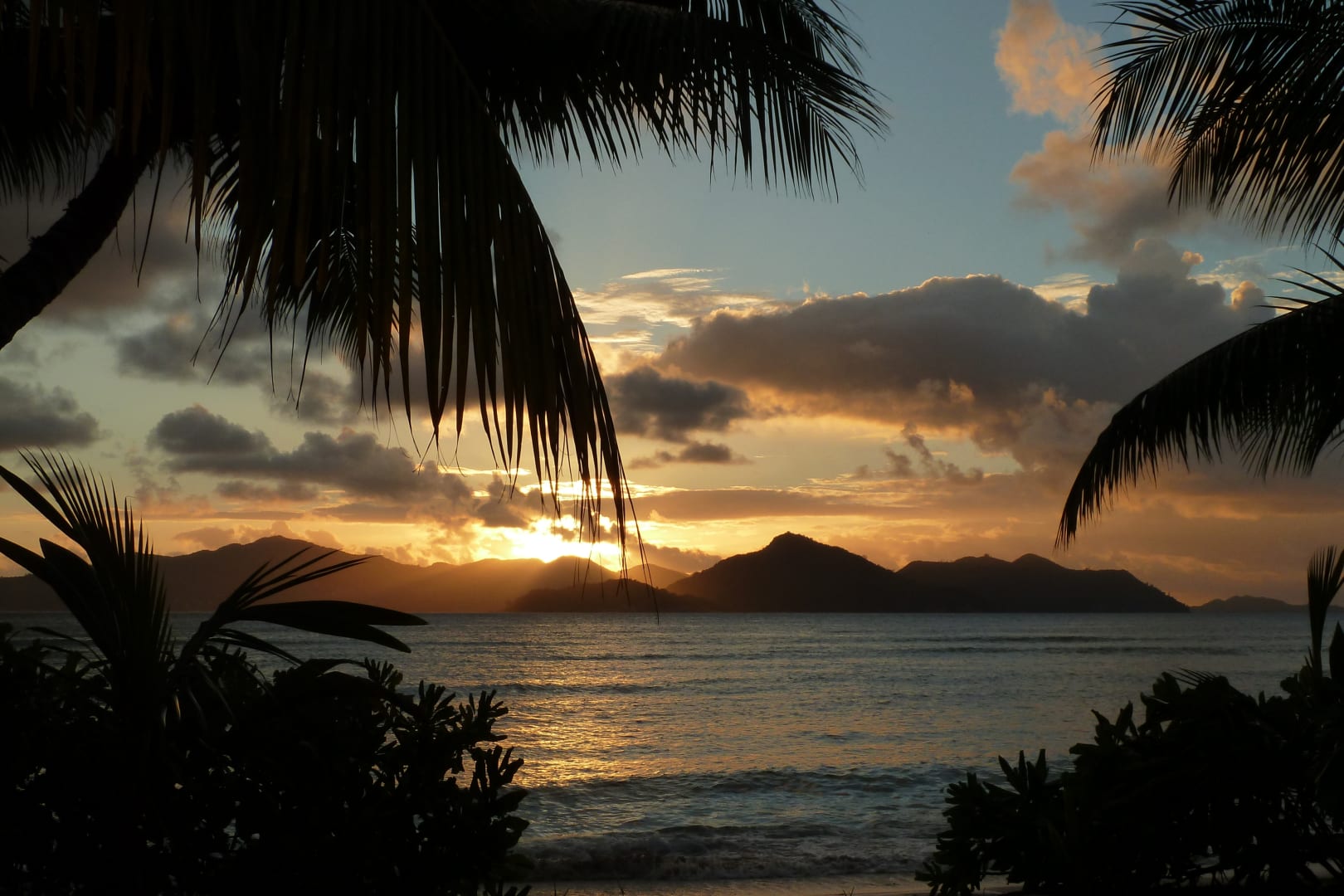 Sonnenuntergang Strand la Digue Island Lodge Richtung PrasliSonnenuntergang Strand la Digue Island Lodge Richtung Praslin