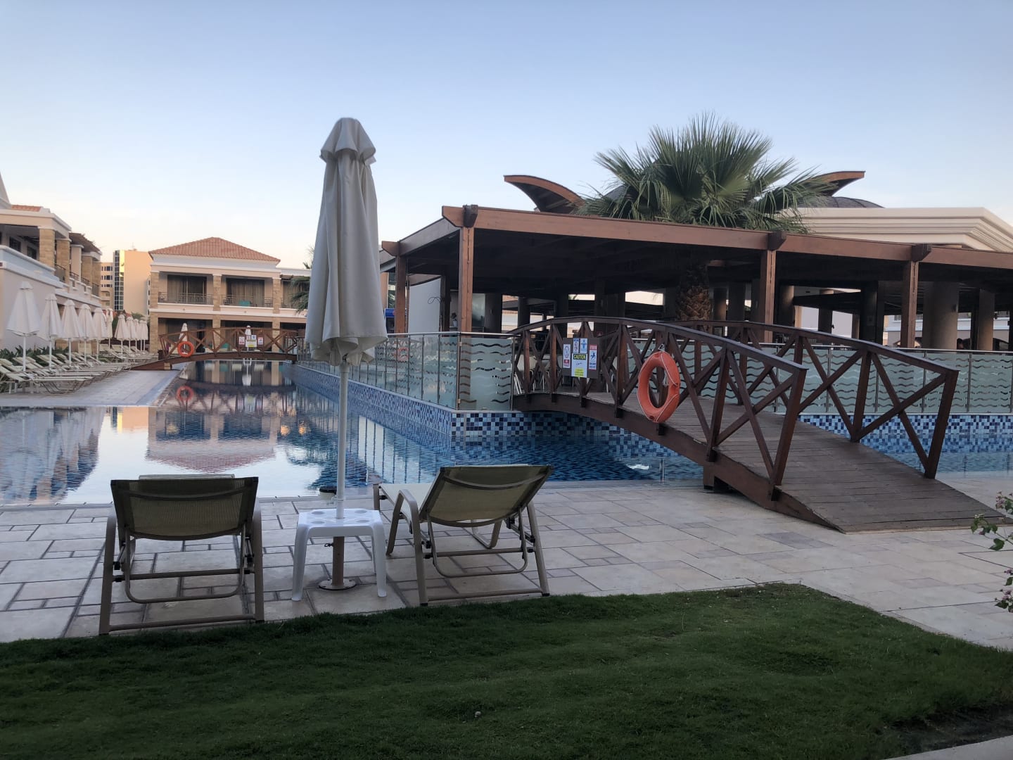 Blick von der Terrasse zur Poolbar