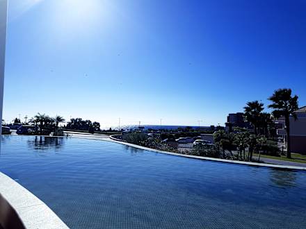AusblickBlick vom Restaurant ( Frühstück ), im Hintergrund blau das Meer, die Plätze draußen sind sehr begehrt.