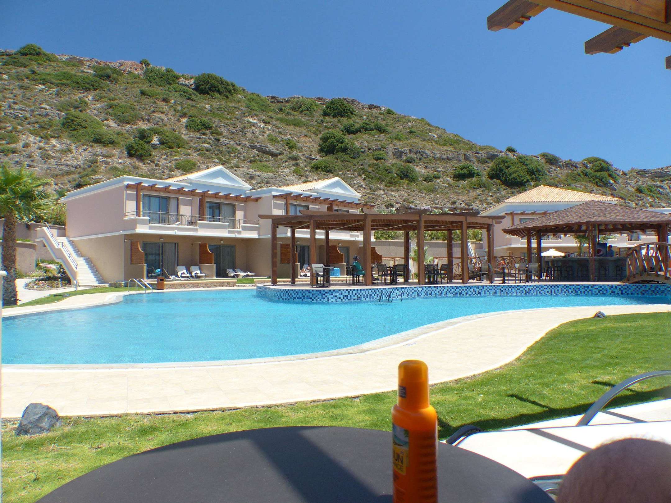 Blick vom Zimmer auf den Pool