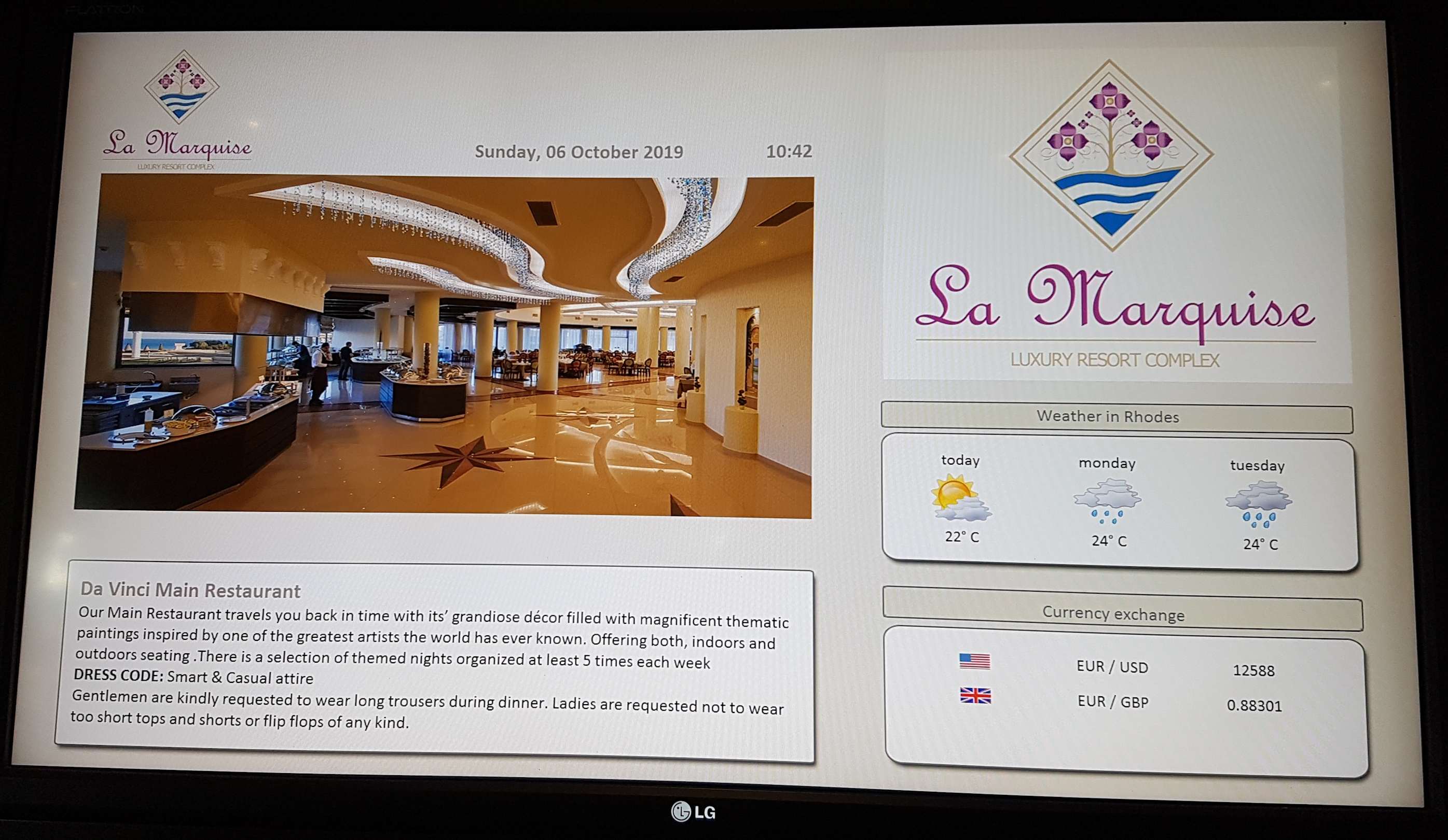 Anzeigetafel am Restauranteingang