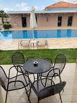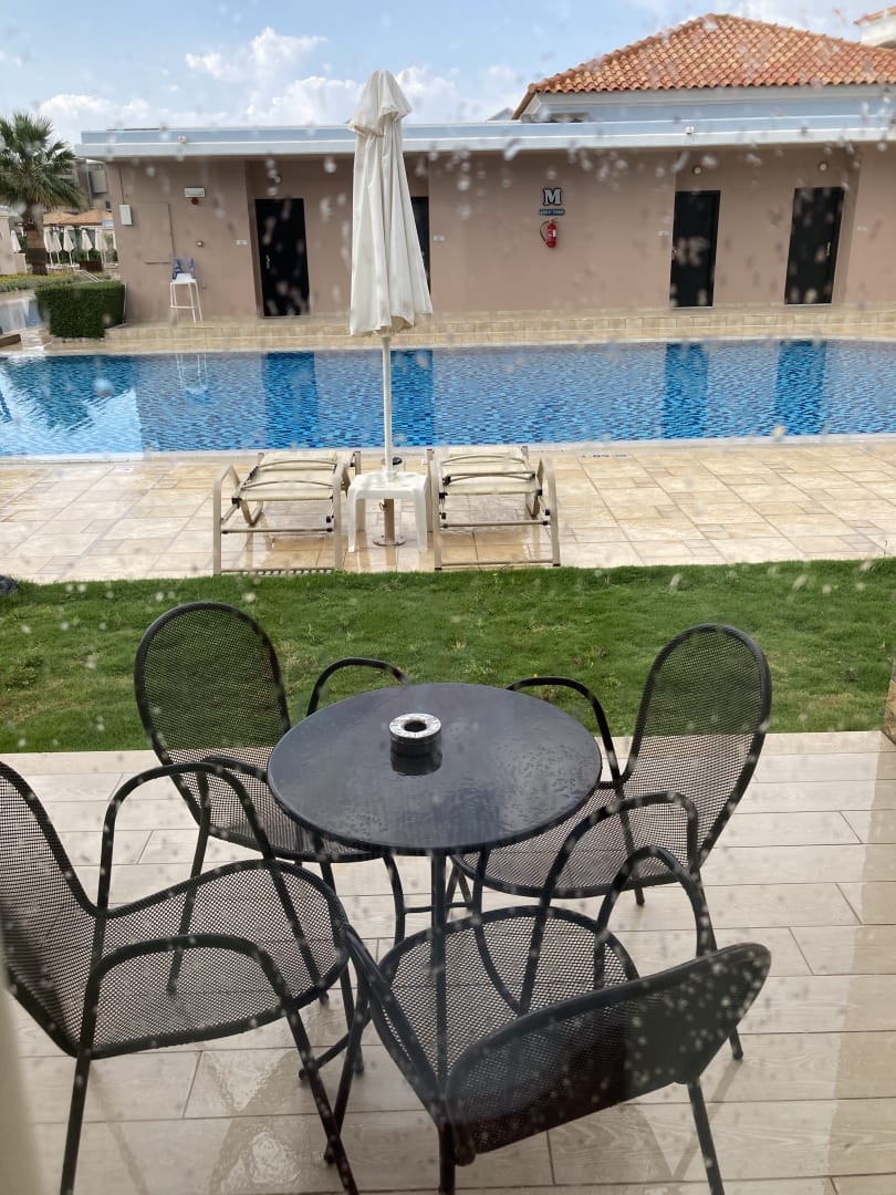 Aussenblick aus dem Zimmer auf dem (fast) privaten Pool. Leider hat es am ersten Tag geregnet