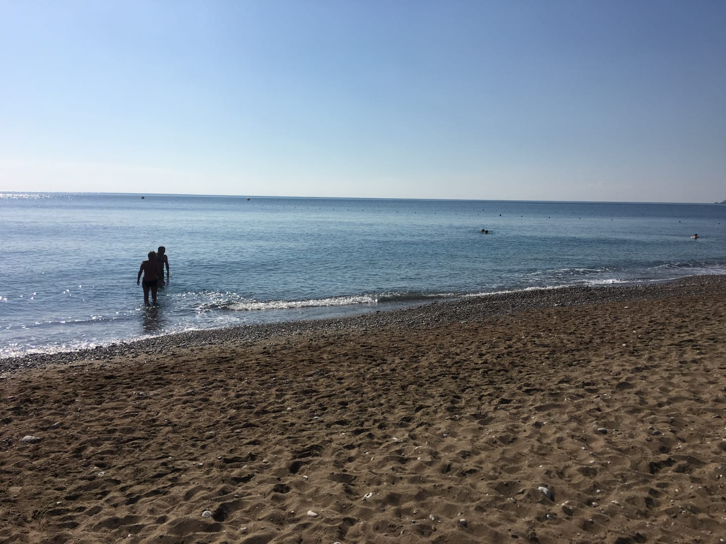 Sandstrand mit schonen Strandbetten und Sonnenschirme für Hotelgäste kostenlos Etwas felsig und Kies am Rand, aber das Wasser ist sehr schön klar.