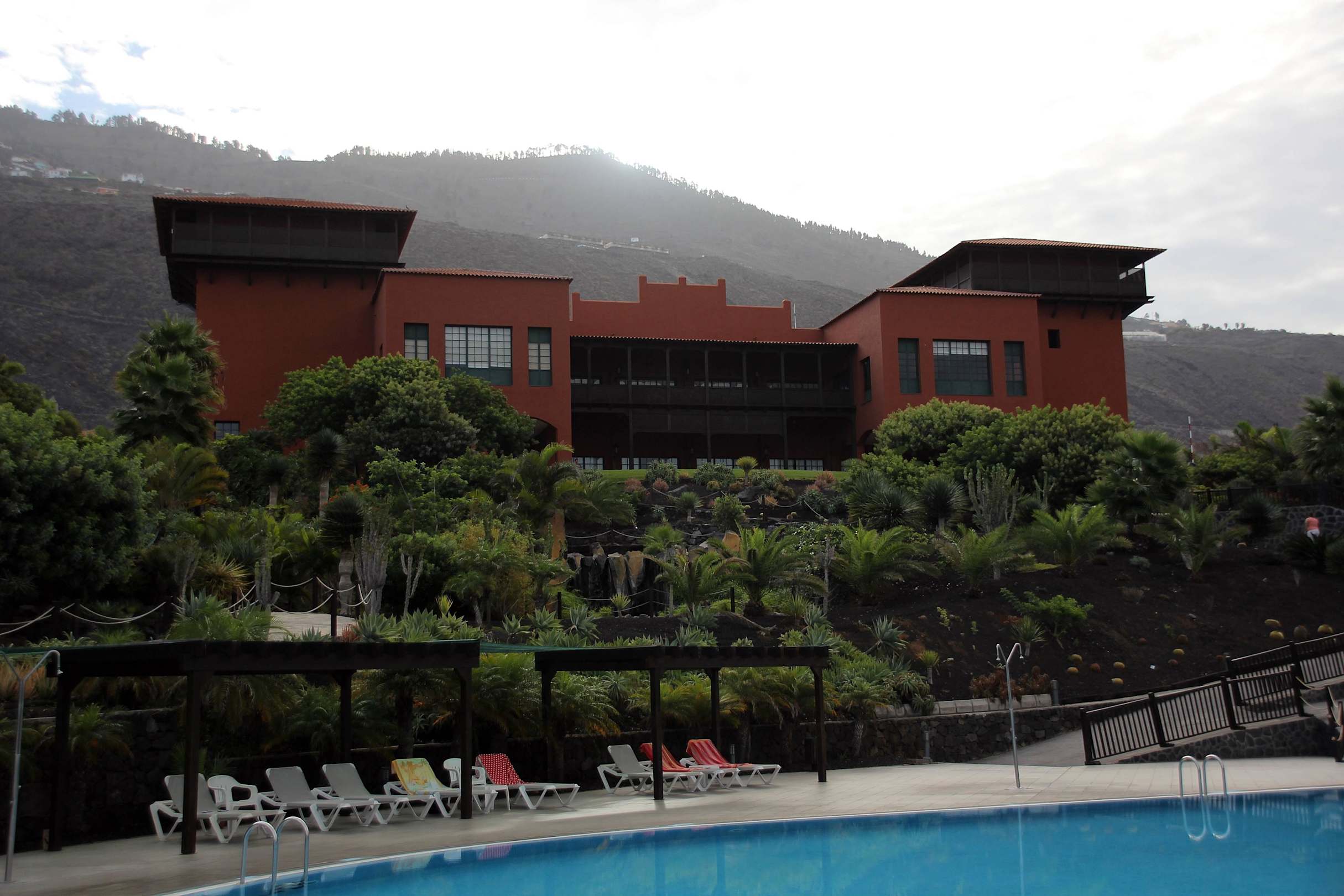 Blick auf das Haupthaus vom Pool