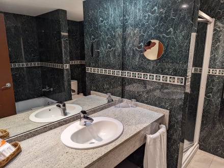 große Ablage am Waschbecken