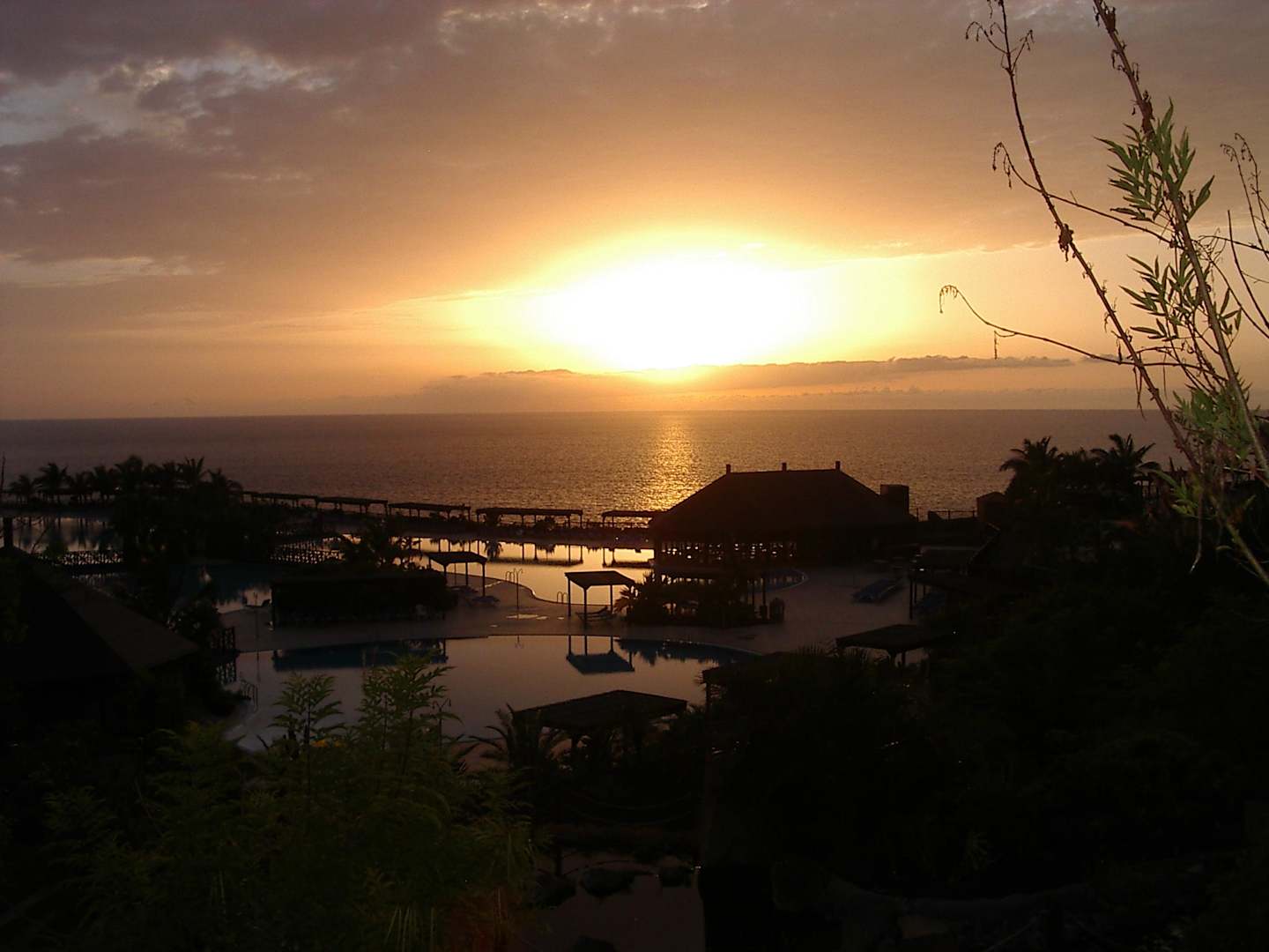 Poolanlage bei Sonnenuntergang
