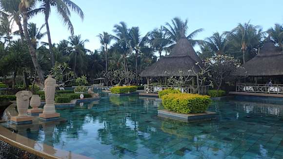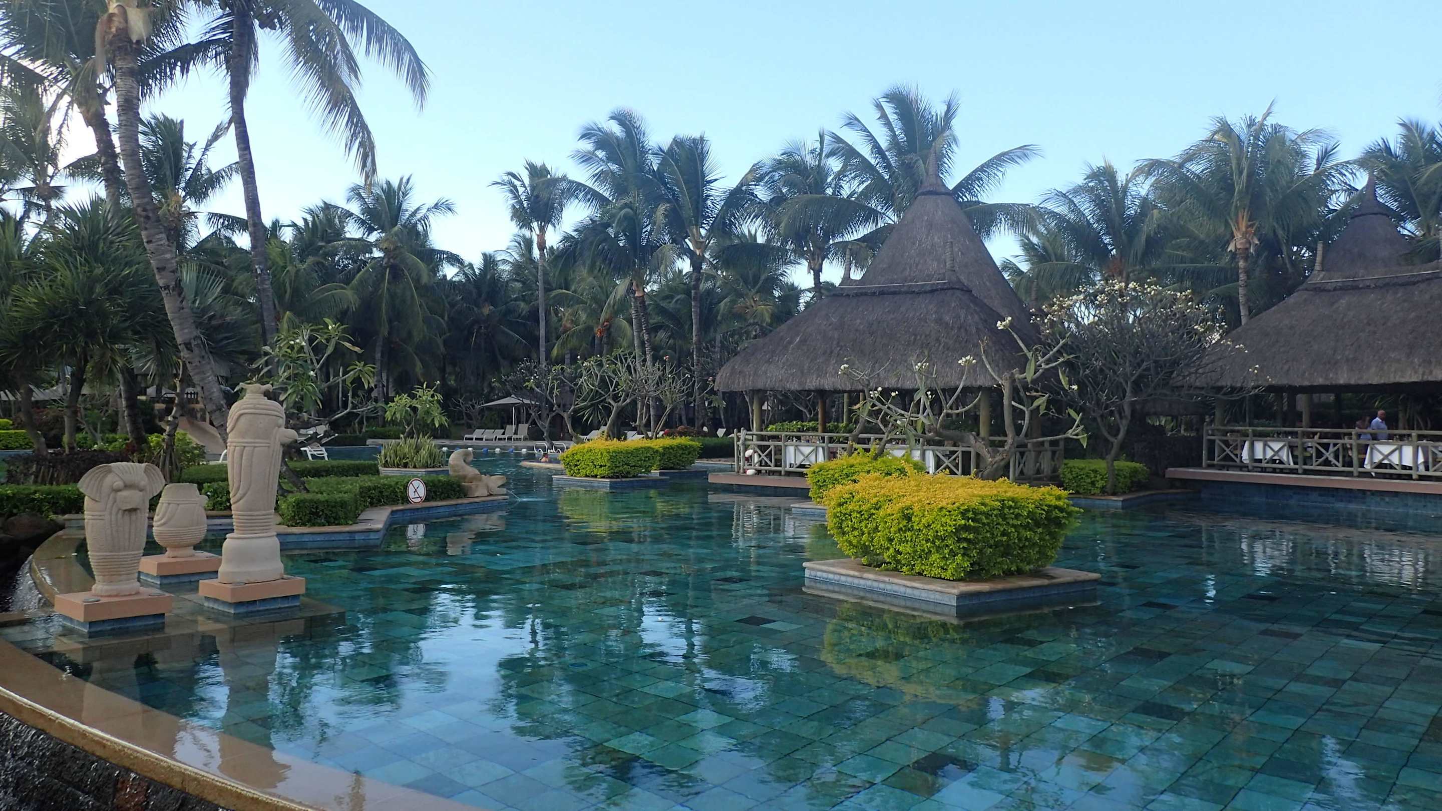 Pool mit Blick auf das Restaurant La Pirogue Mauritius
