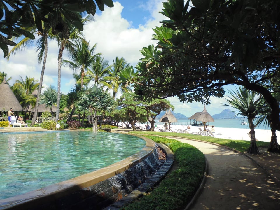 Links Pool, Strandweg, rechts Strand