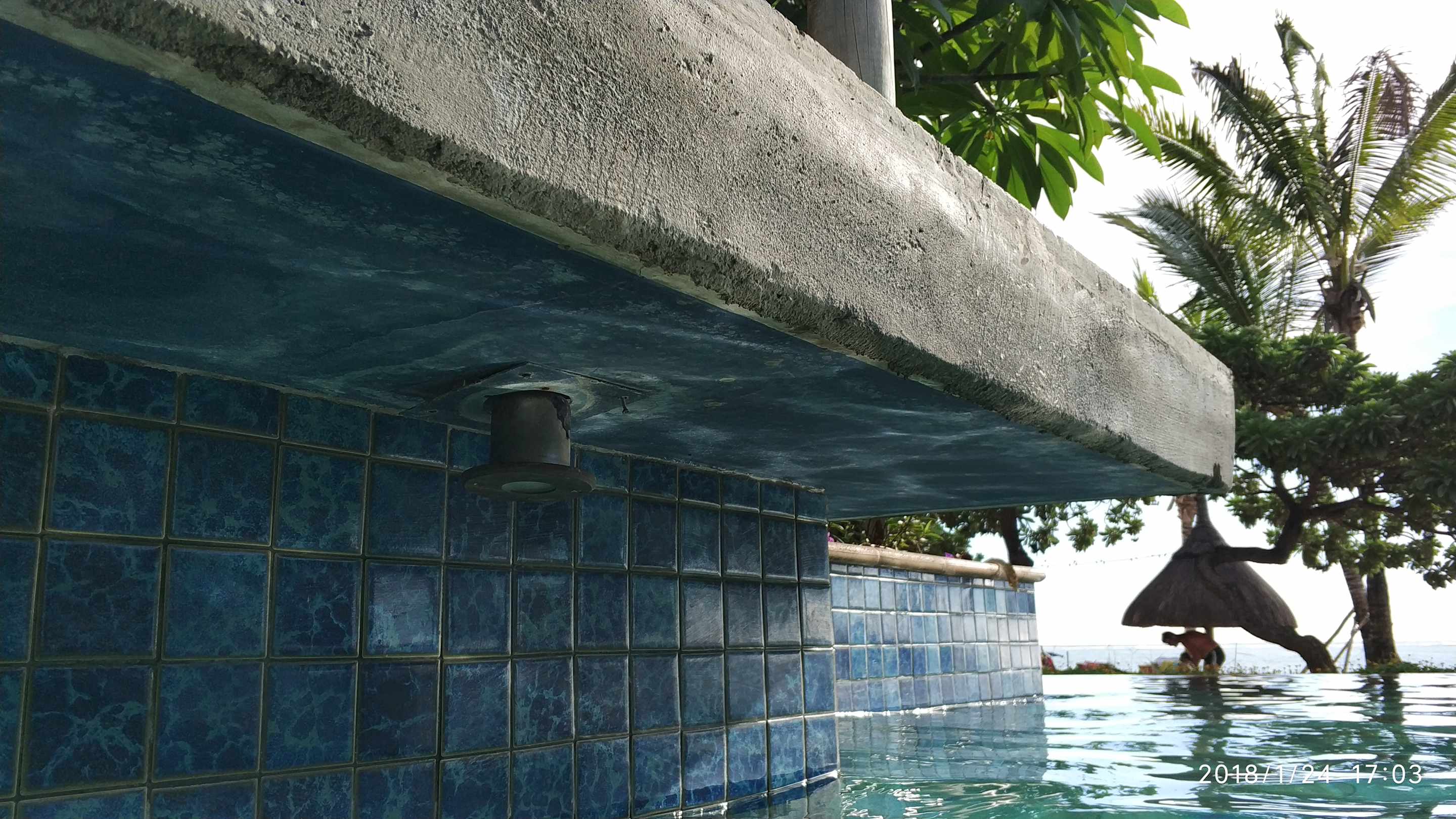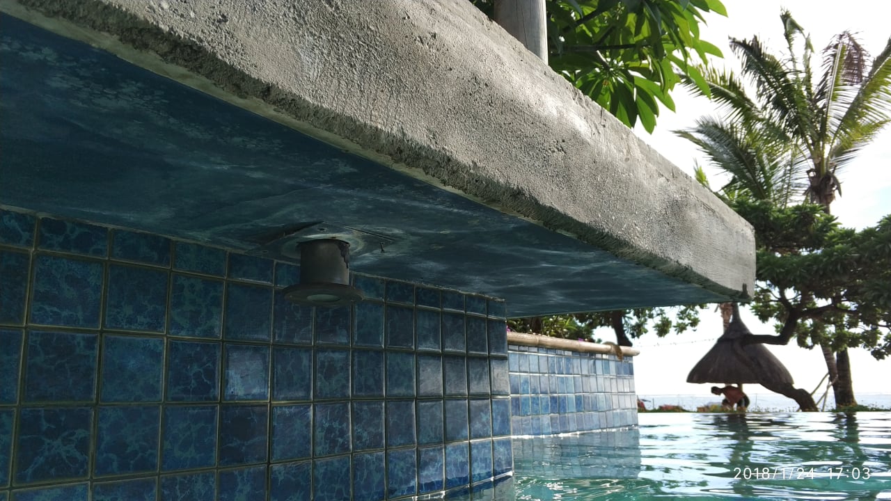 Pool renovierungsbedürftig....trübes Wasser, Ölfilm auf der Wasseroberfläche, keine ordentlichen Duschen am Pool, lediglich Gartenschlauchdusche, keine Umkleidekabine in Poolnähe Kabel und Schrauben hänge lose Poolbeleuchtung Fehlanzeige