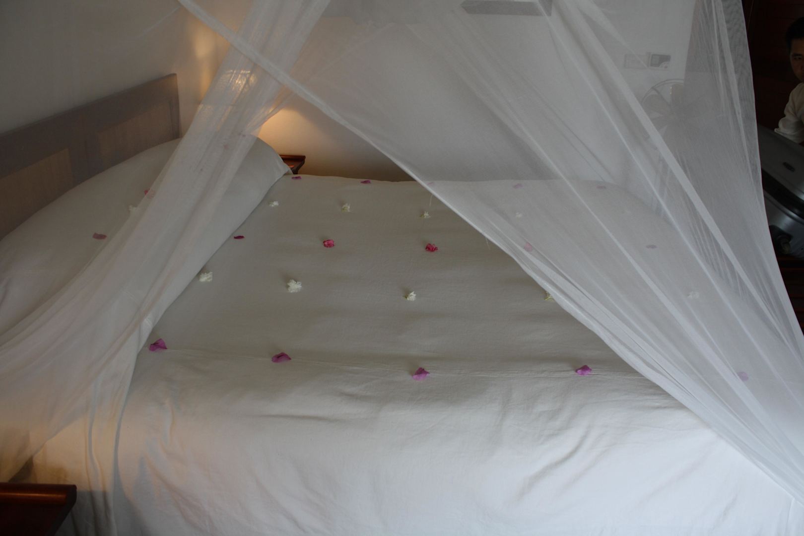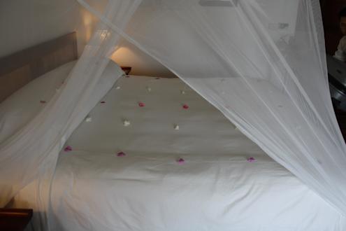 Liebevoll geschmücktes Bett