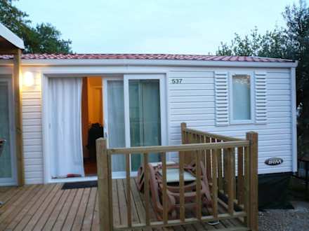 Das Mobilheim La Rocca delux ist geeignet für Familie mit Kind, Paare, Freunde, da jeder sein eigenes Schlafzimmer hat. Das Wohn/Esszimmer bietet nochmals Schlafplätze für 2 Personen.