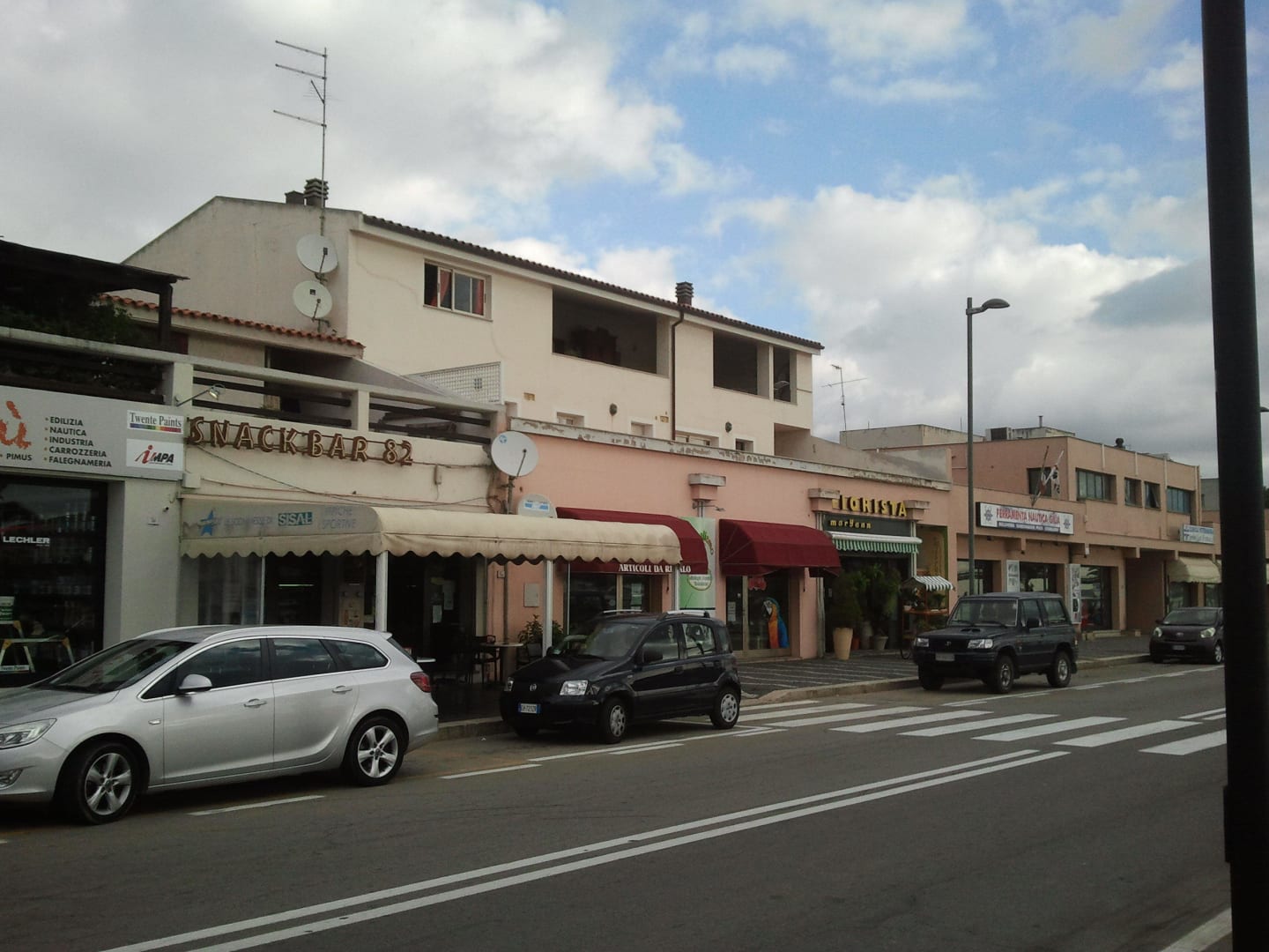 IN der Mitte die Pension, links die Frühstücksbar