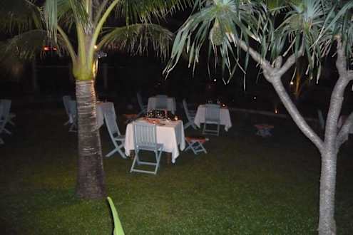 Das Abendessen kann man in der sehr gepflegten Wiese bei Kerzenschein einnehmen