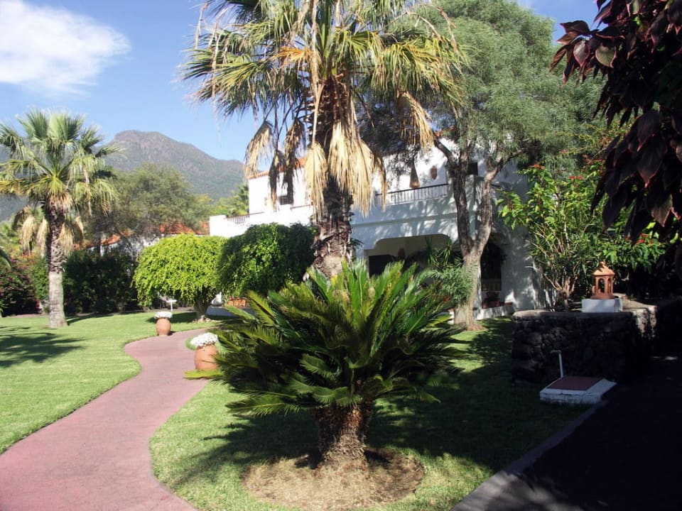 Garten mit Rezeptionsgebäude