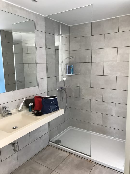Badezimmer, Wasser läuft immer an der Seite nach der Glaswand raus