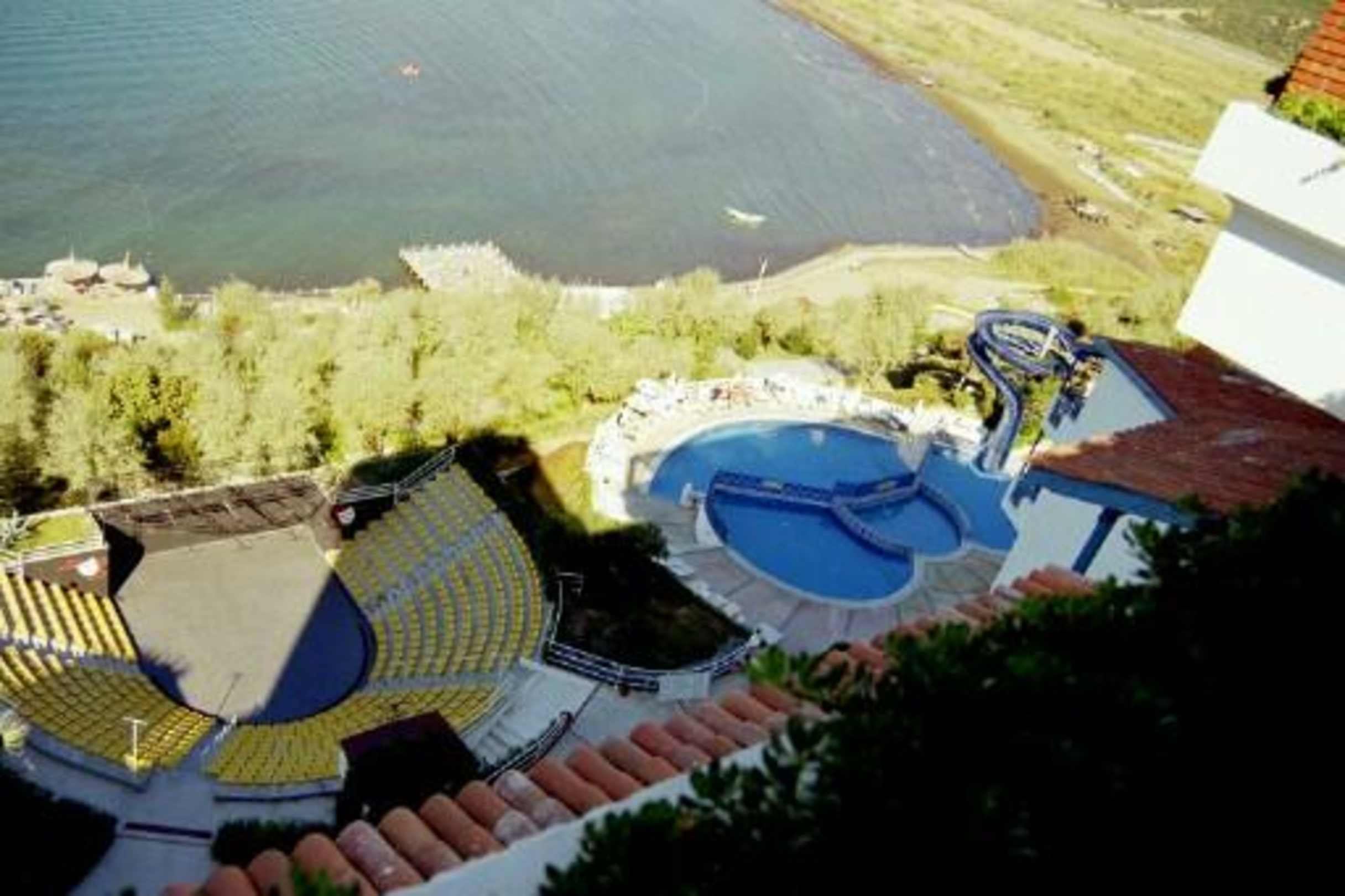 Blick vom HotelBlick von einer oberen Etage des Hotels, wo die Rezeption und der Haupteingang liegen. Pool, Theater und teilweise Strandabschnitt