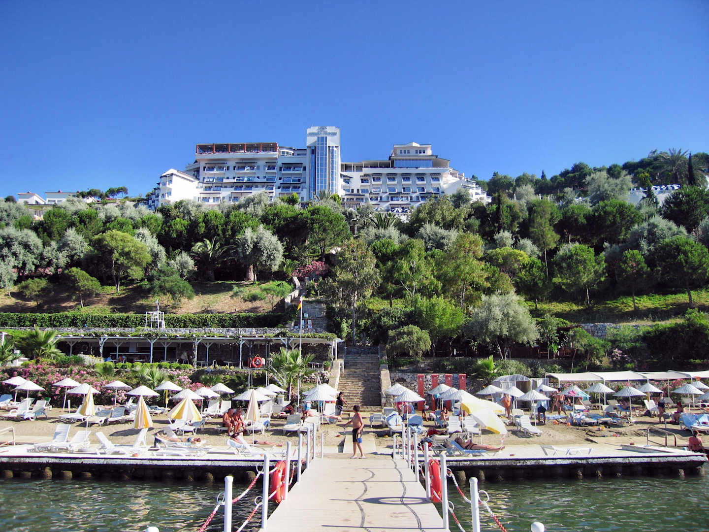 Blick vom Steg aufs Hotel