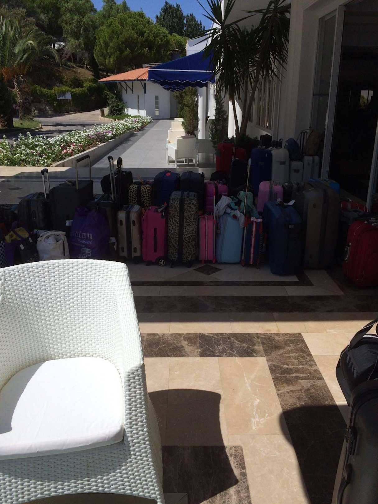 Unbeaufsichtigte Koffer vor dem Hoteleingang