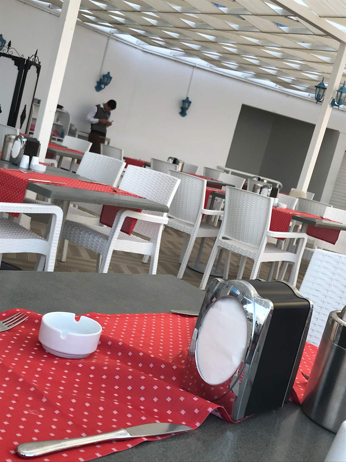 Kellner stehen mit Handy da anstatt abzuräumen oder zu bedienen