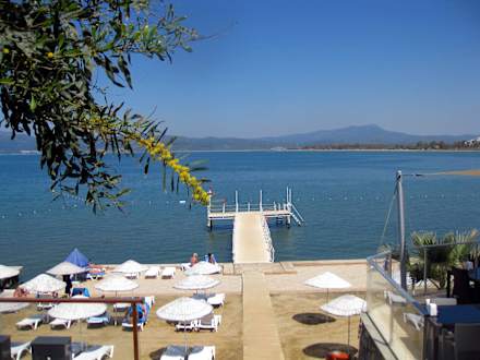 Badesteg, rechts zur Bar & Restaurant