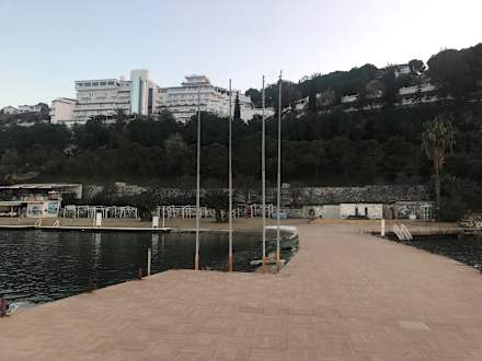 Steg, Blick zum Hotel