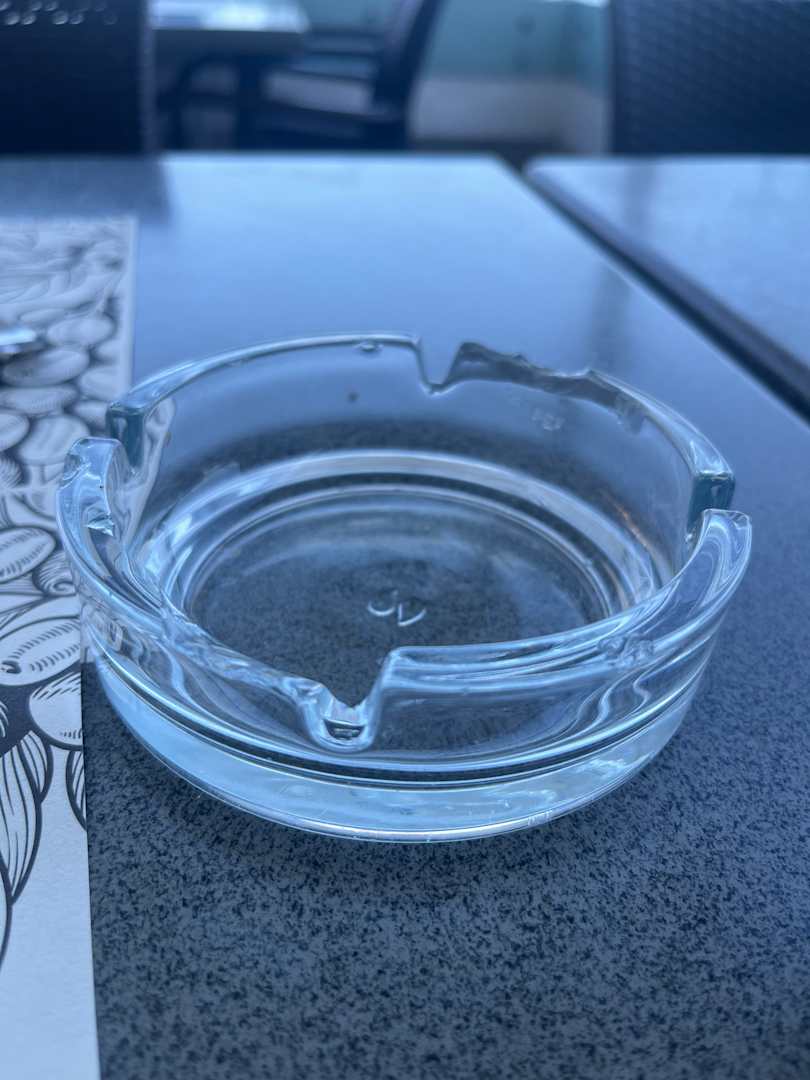 GastroDas geringste Übel: ein kaputter aber immerhin sauberer Aschenbecher. Sauberer als das Besteck zumindest …