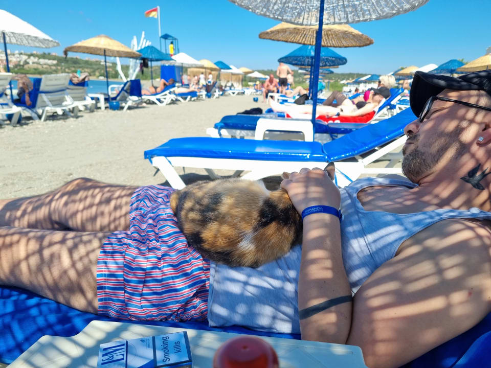 StrandAm Strand chillen mit den Hotelkatzen. Die Katzen betteln nicht weil sich täglich gefüttert werden vom Hotel