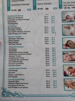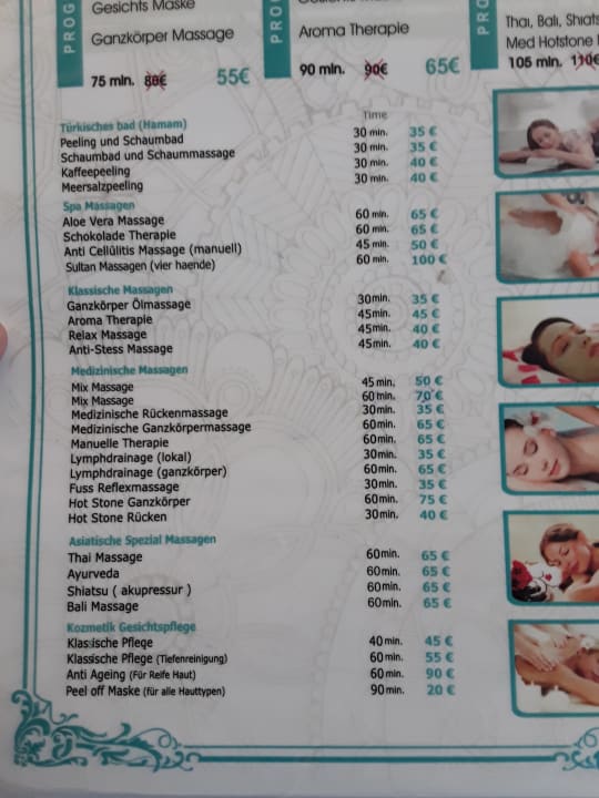 Preisliste SPA Bereich im Oktober 2019