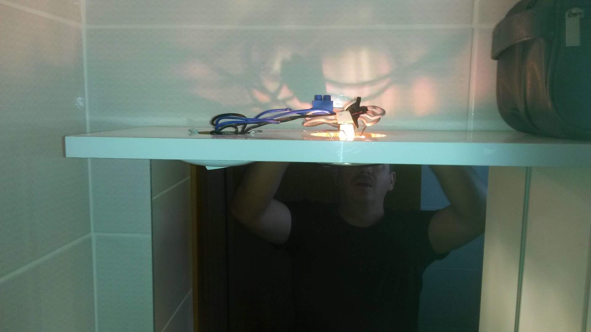 Offene Kabel am Badschrank