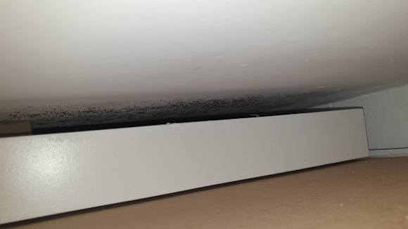 ZimmerBett von der Außenwand weg gezogen. Alles verschimmelt