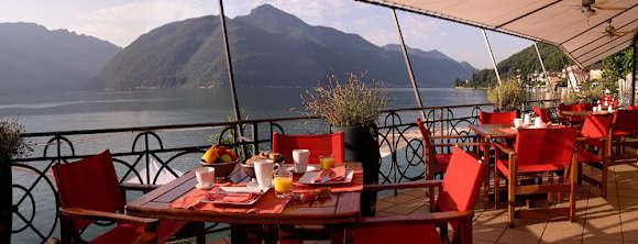 Breakfast on restaurant terrace