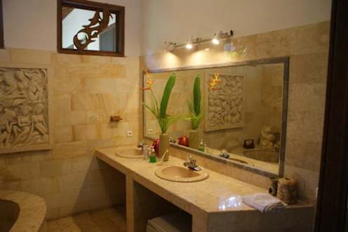 Riesiges Badezimmer, schöne Blumendekoration, leider Fenster nicht verschließbar(hellhörig!)