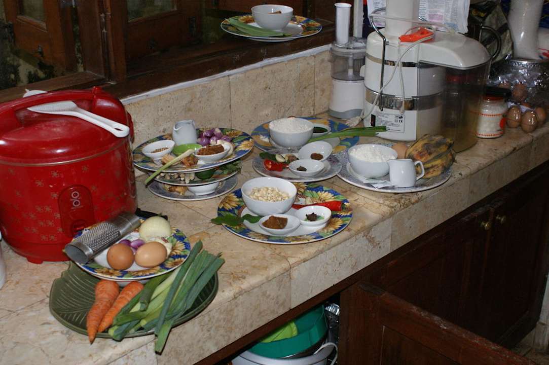 Ich habe da schon mal etwas vorbereitetMorgens: Einkauf, nachmittags Kochen. Die Küchencrew hatte alles vorbereitet, Zutaten und Menge pro Rezept. Curry zubereiten, zerkleinern, mörsern und bruzzeln unter Anleitung war unsere Sache. Heidenspaß! Höhepunkt: Probeessen am Abend!