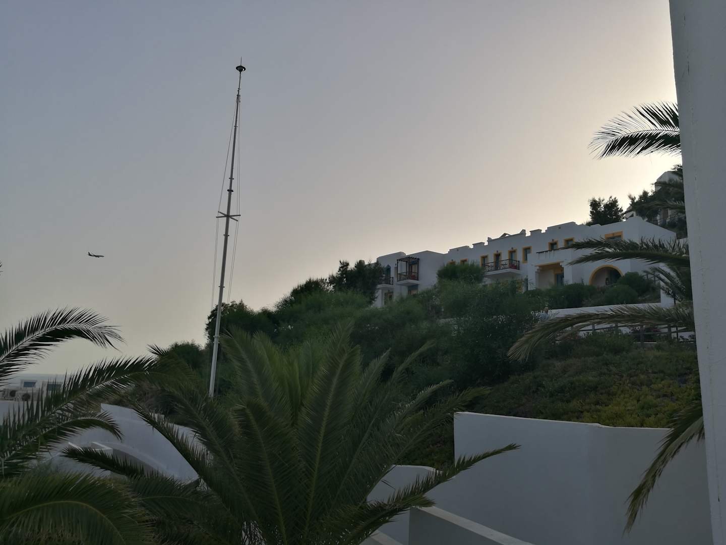 GartenanlageIm Bild ebenso ein Flieger im Landeanflug. Ausblick vom Zimmer.