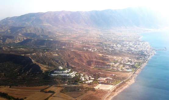 Das Hotel aus dem Flugzeug Im Hintergrung der Ort Kardamena