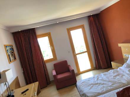 Schlicht, jedoch ausreichend zum schlafen und duschen/baden, Balkon haben wir uns mit den Nachbarn geteilt (Plastiktisch und 2 Sessel pro Zimmer)