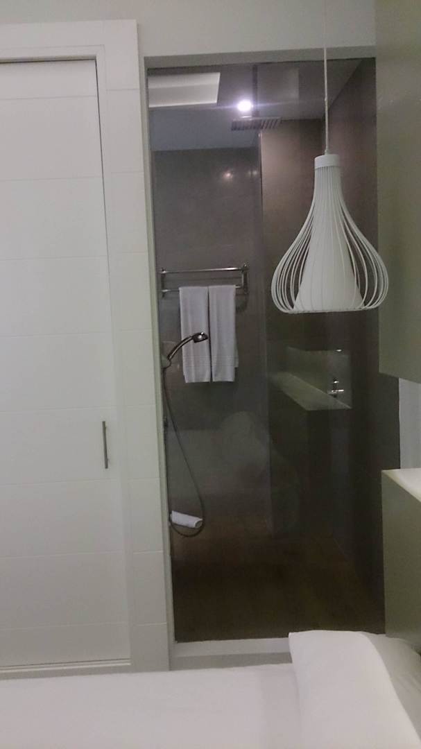 Glasscheibe mit Blick in die Dusche