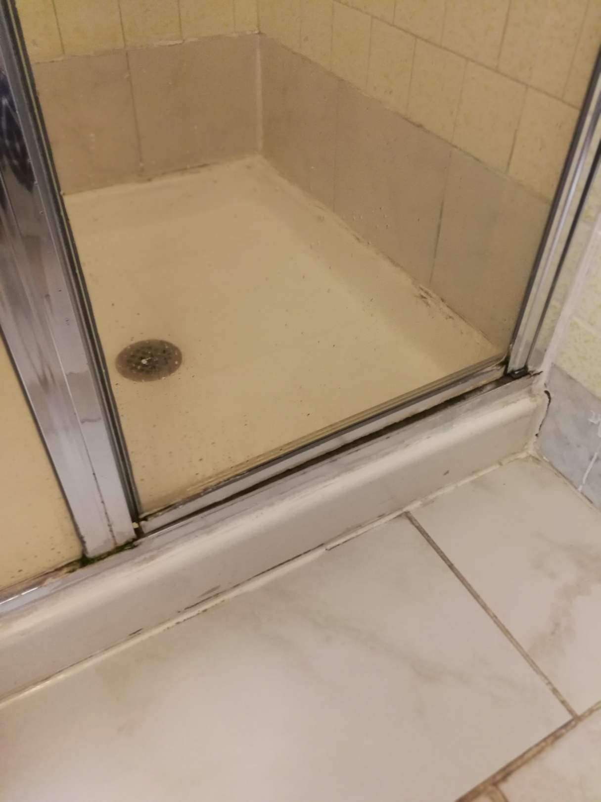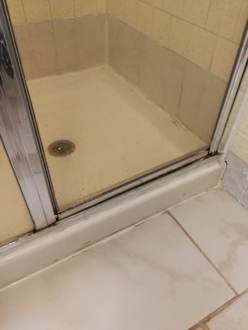 ZimmerDusche in dem "Ausweichzimmer" nach Reklamation des ersten Zimmers. Nur für eine Nacht war der Schimmel hinnehmbar. Bei längerem Aufenthalt hätte ich auch dieses Zimmer abgelehnt. Es handelt sich gem. Buchung um ein Deluxe Zimmer im 3 Sterne Hotel!