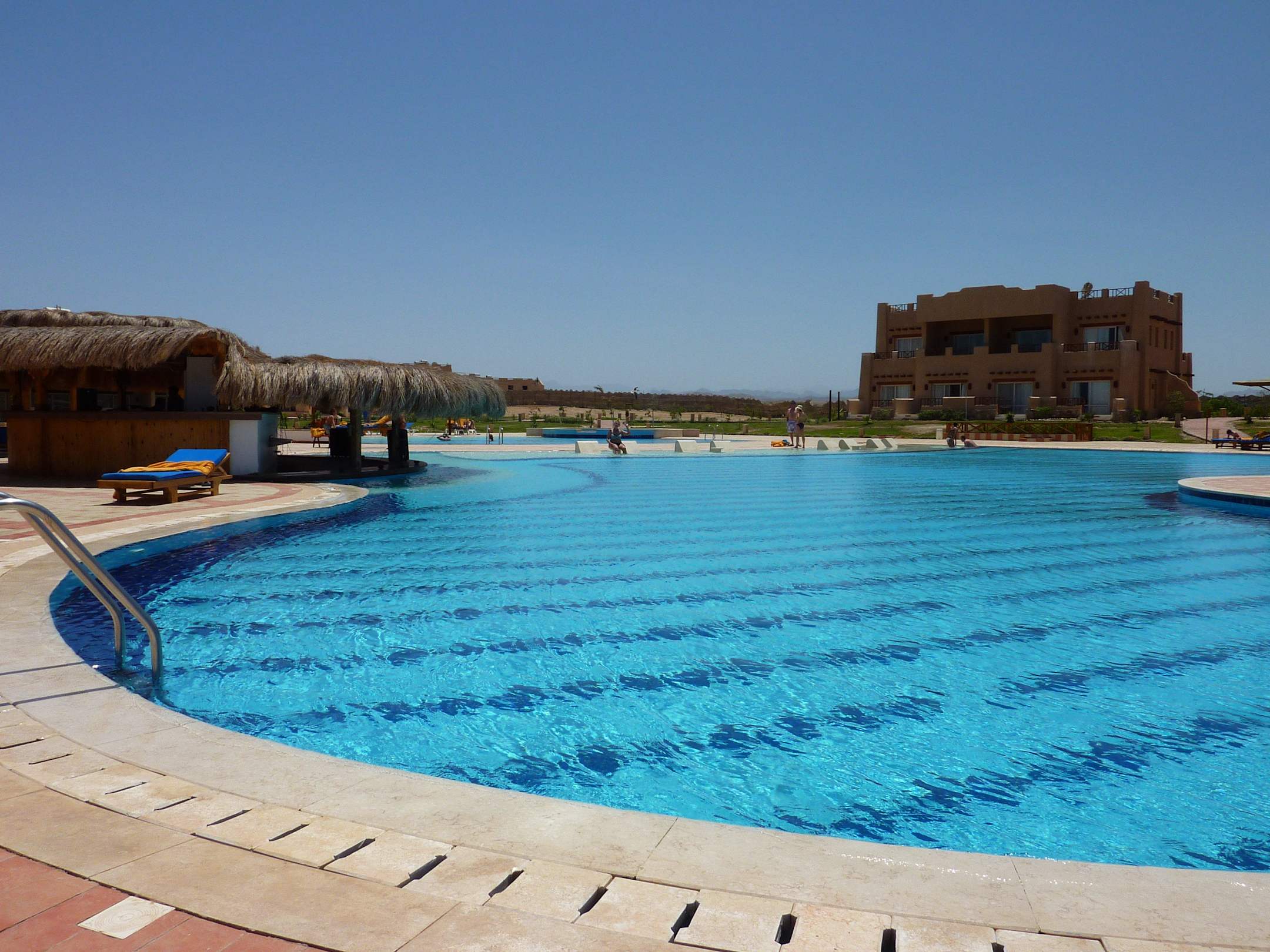 Poolanlage mit Strandbar (links) und Wohneinheit