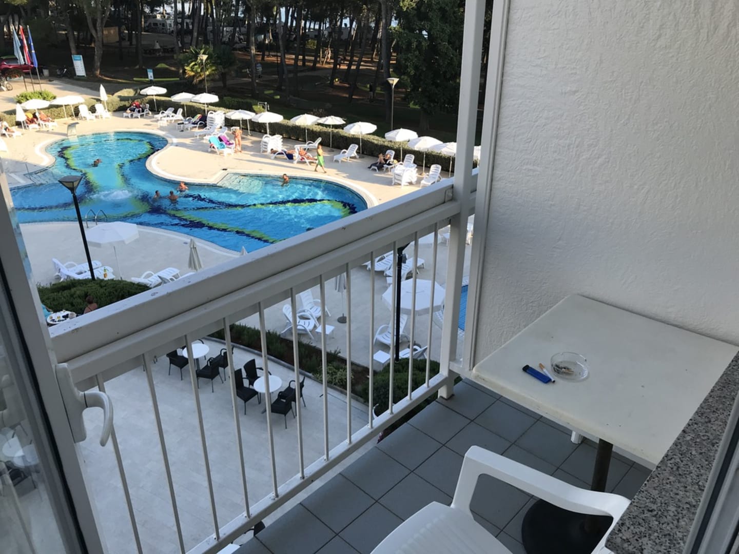 Aussicht vom Balkon auf den Pool