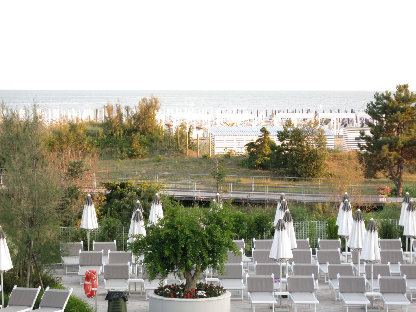 Blick auf Poolliegen und Strand