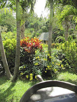 Blick von Rezeption zum Froschteich