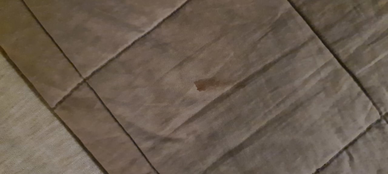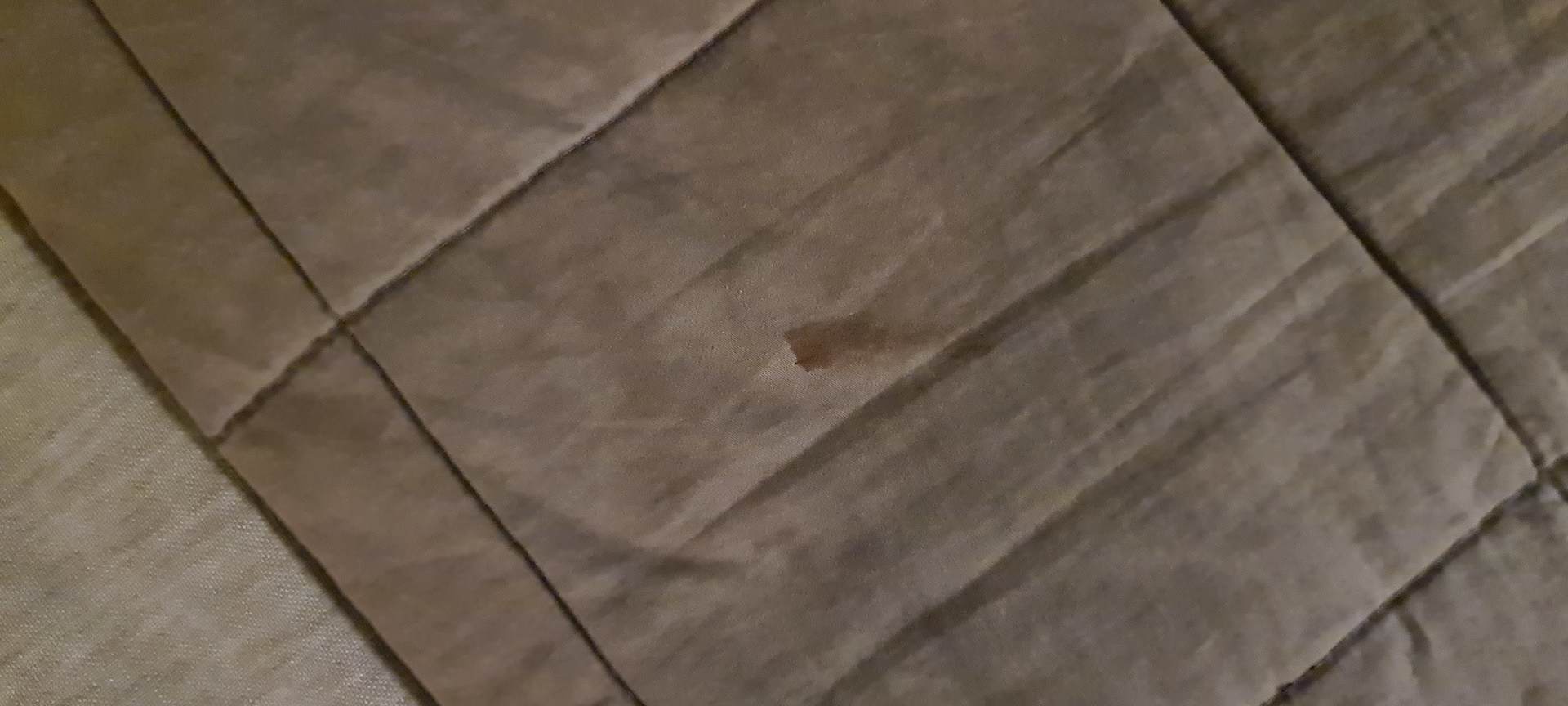 verschmutzte Bettoberdecke (Blutfleck?)