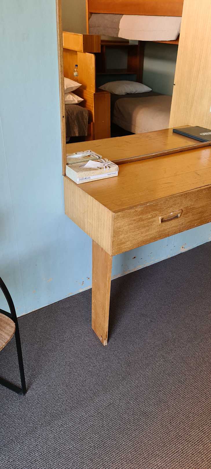 Schäden an den Zimmerwänden, abgenutztes Mobiliar